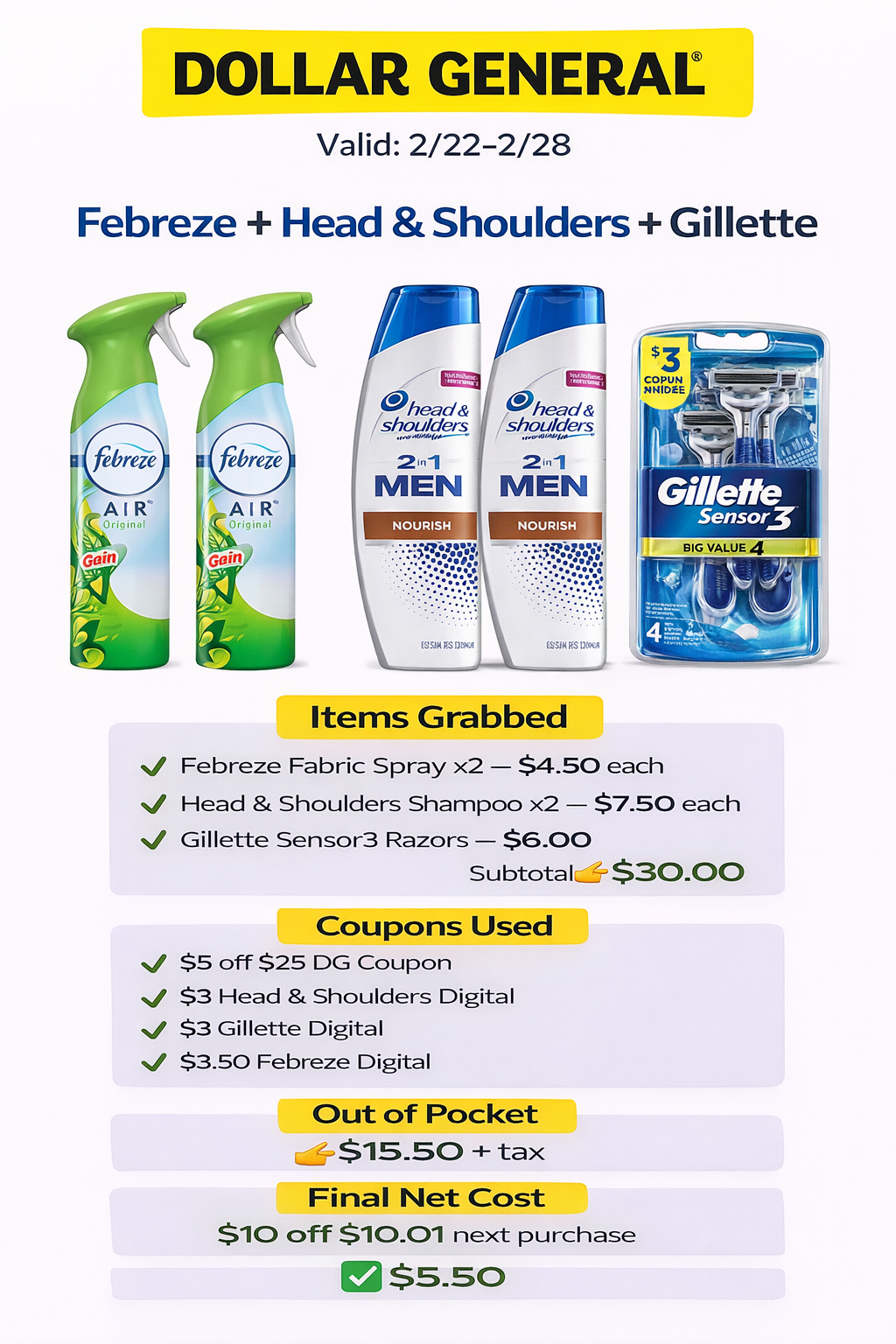 Febreze + Head & Shoulders + Gillette