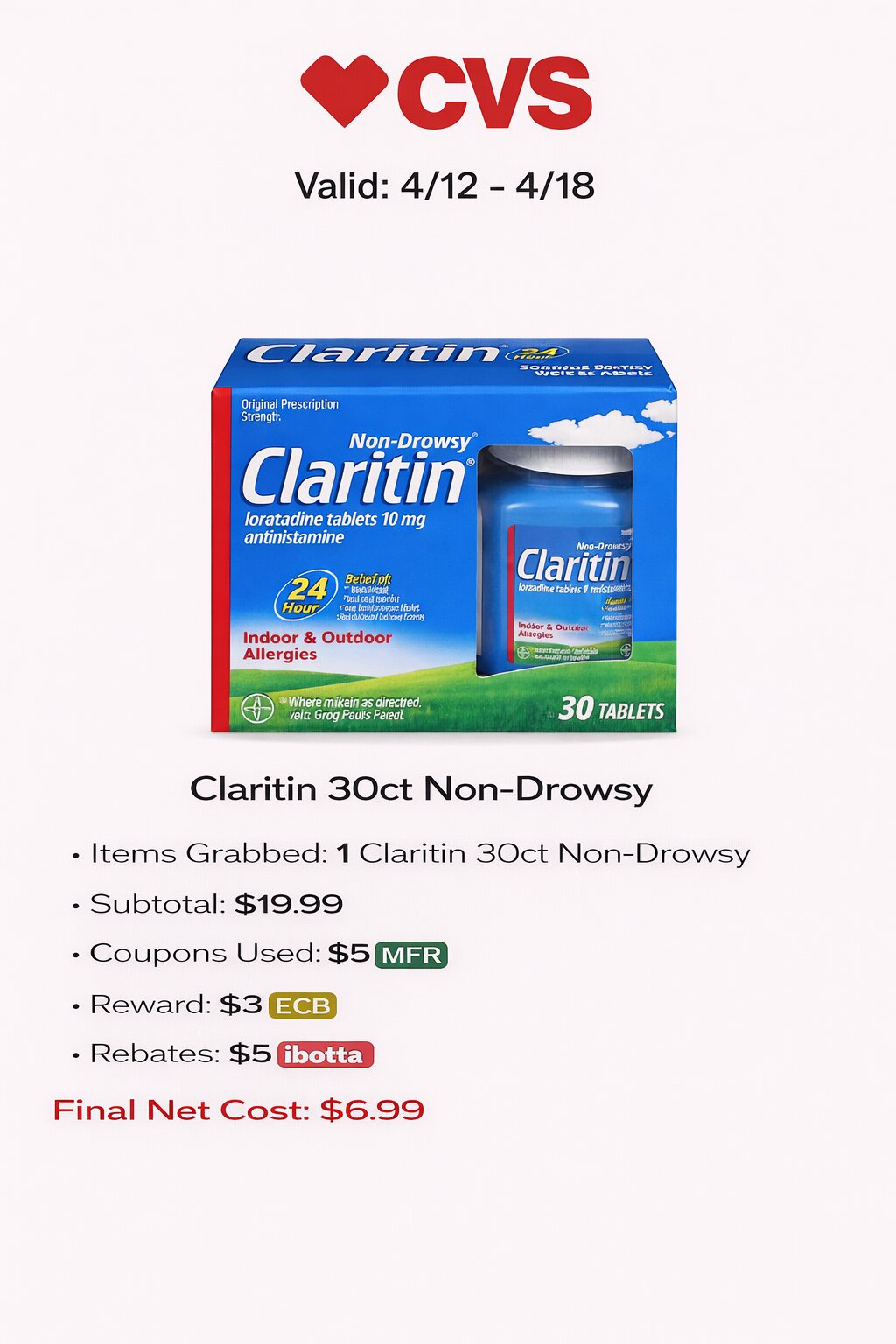 - Items Grabbed: 1 Claritin 30ct Non-Drowsy