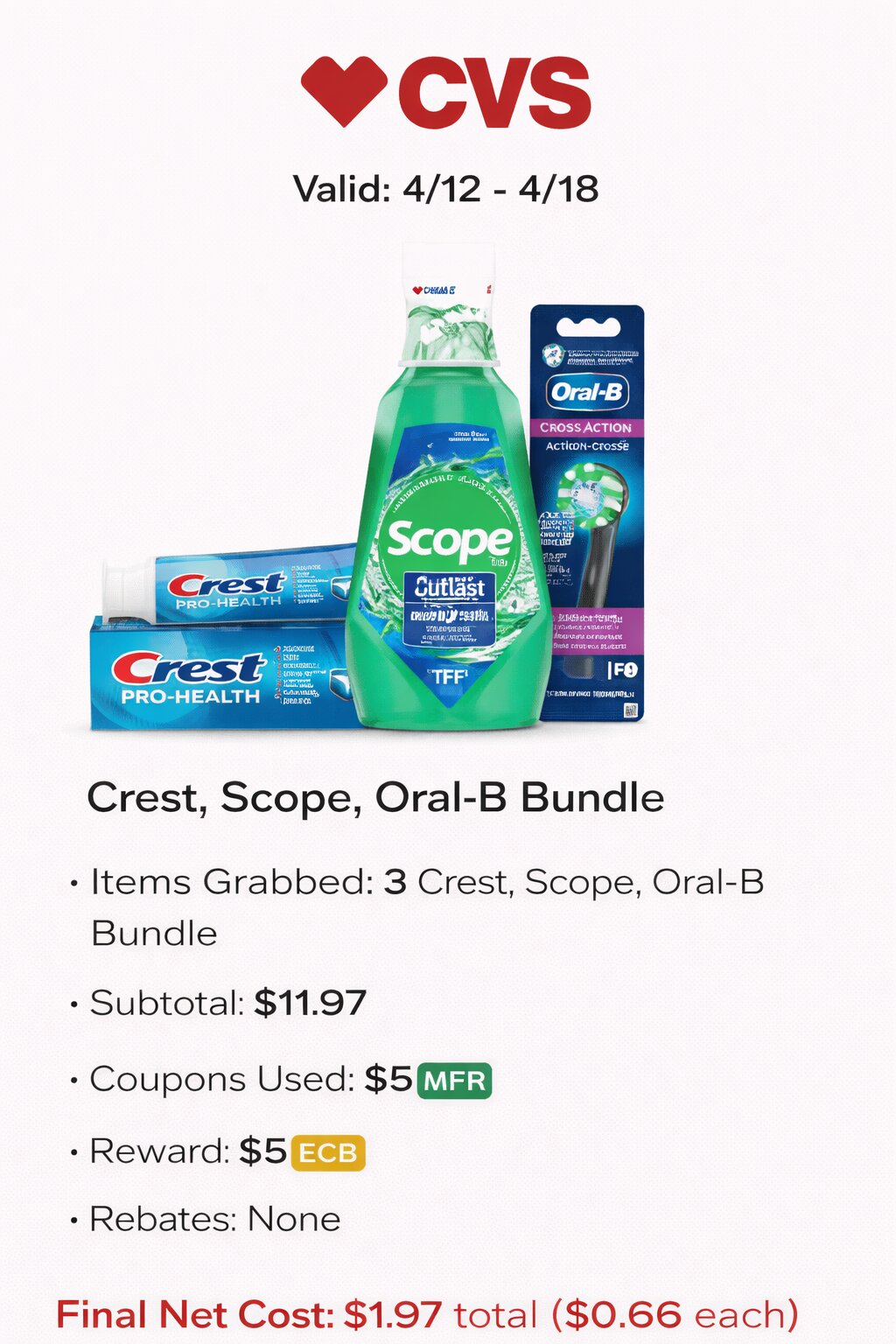 - Items Grabbed: 3 Crest, Scope, Oral-B Bundle