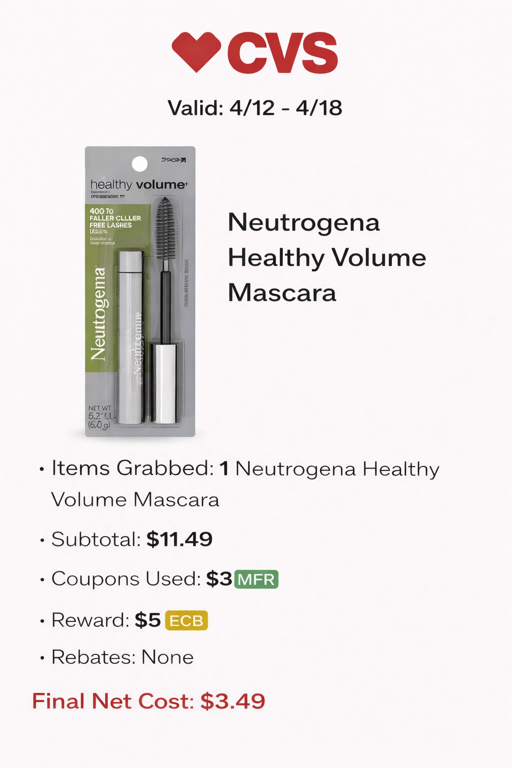 - Items Grabbed: 1 Neutrogena Healthy Volume Mascara