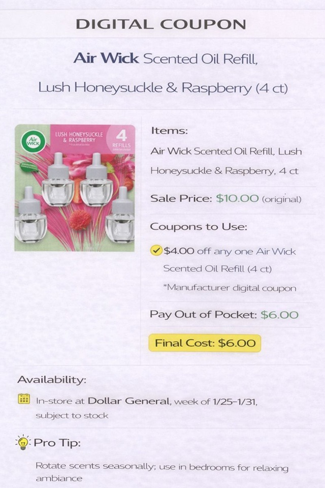 Coupons to Use: $4.00 off any one Air Wick Scented Oil Refill (4 ct) – Manufacturer digital coupon