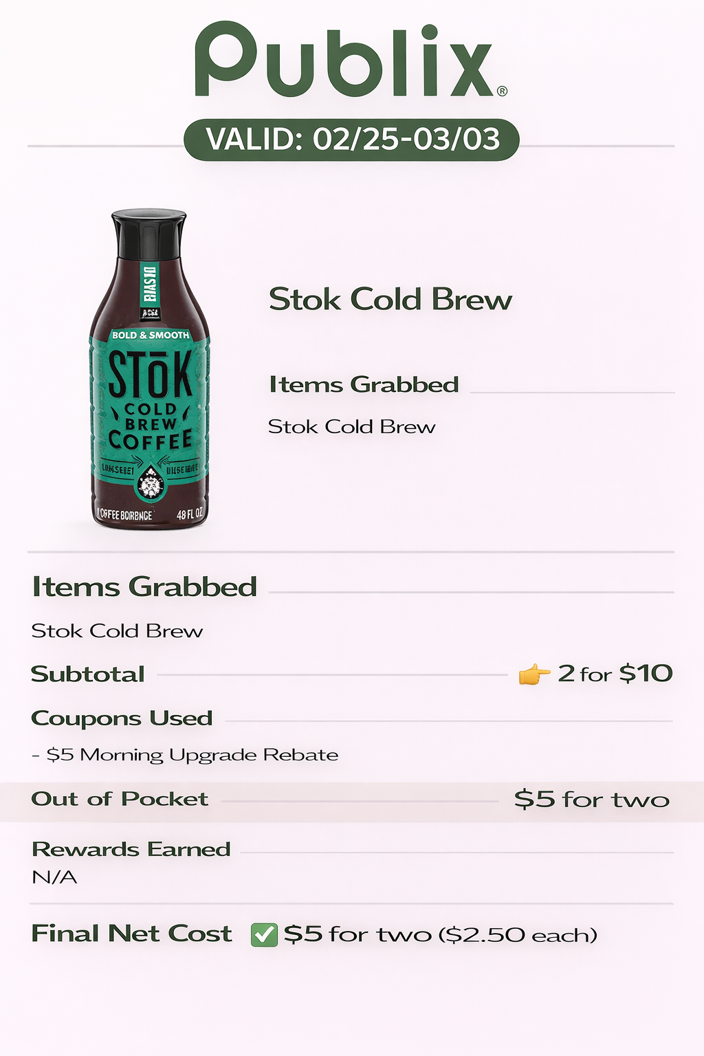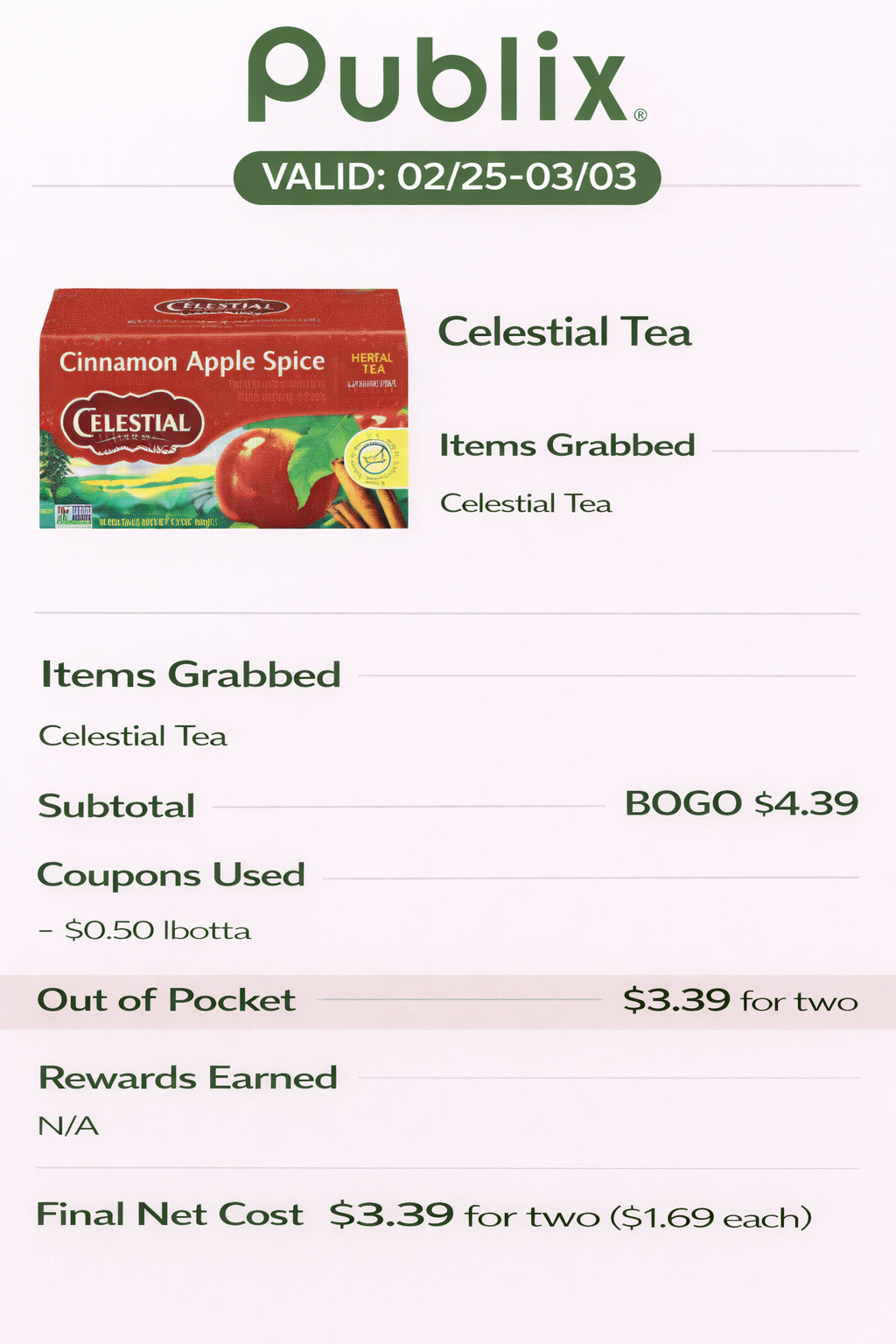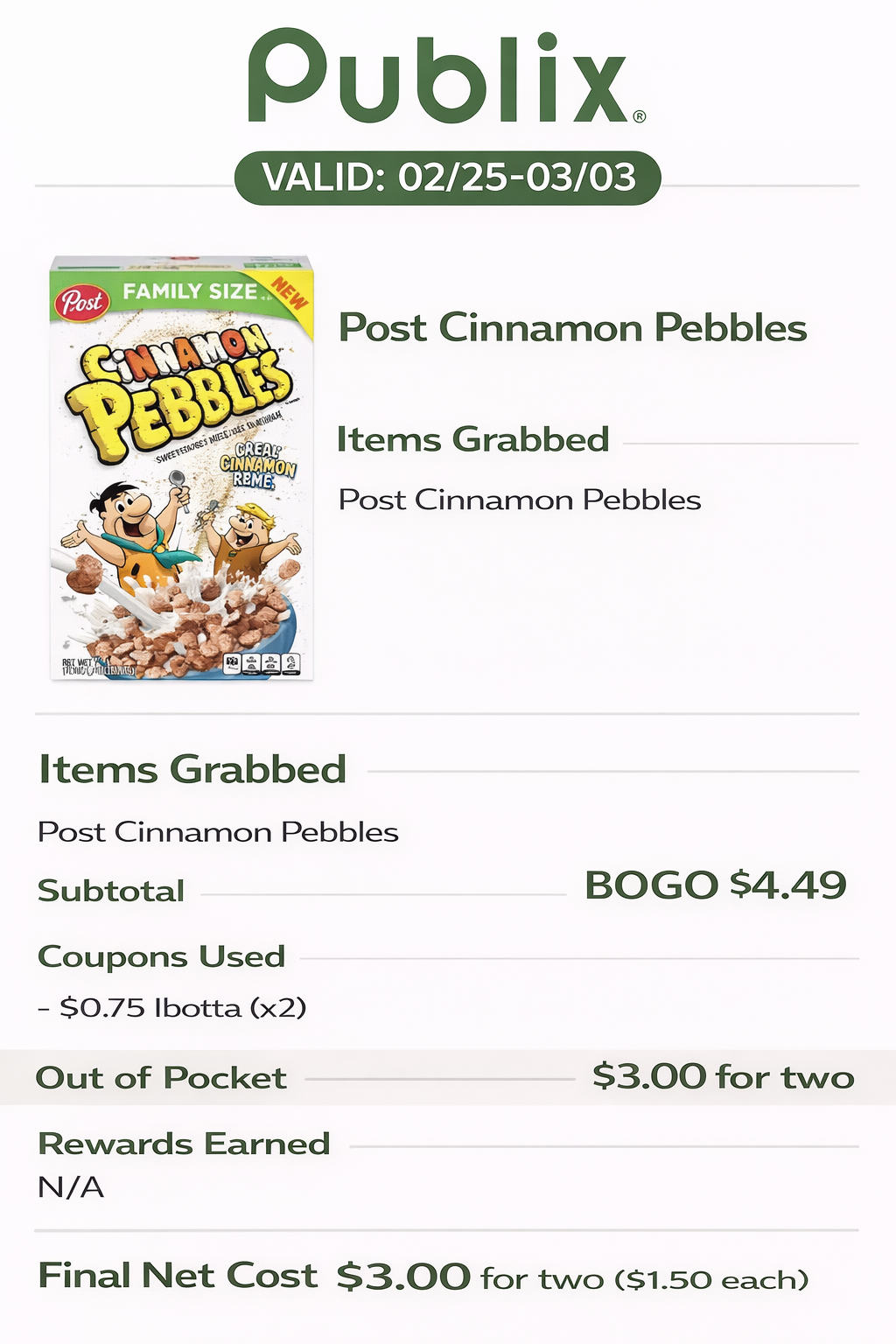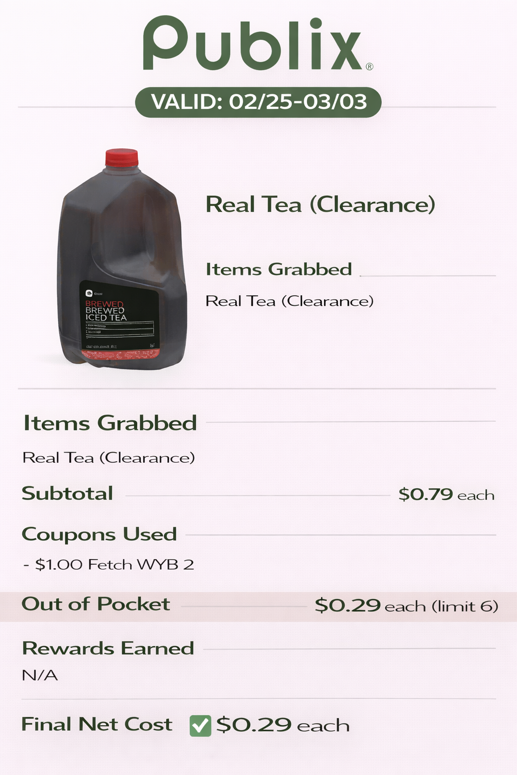 - Final Net Cost: $0.25 for two ($0.12 each)
