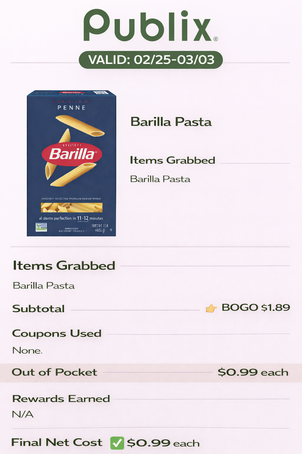 - BOGO $1.89
