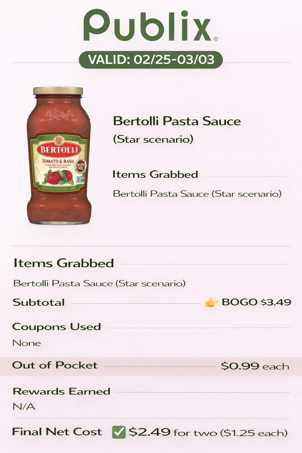 - Bertolli Pasta Sauce (Star scenario)