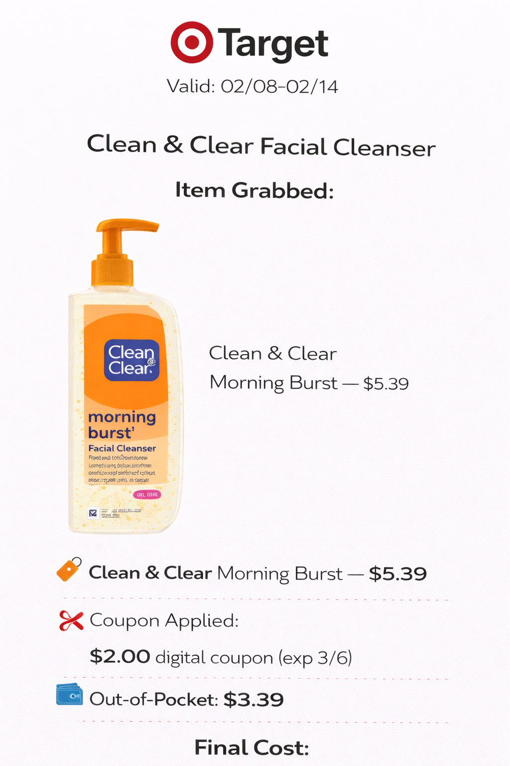 - Item Grabbed: Clean & Clear Morning Burst — $5.39
