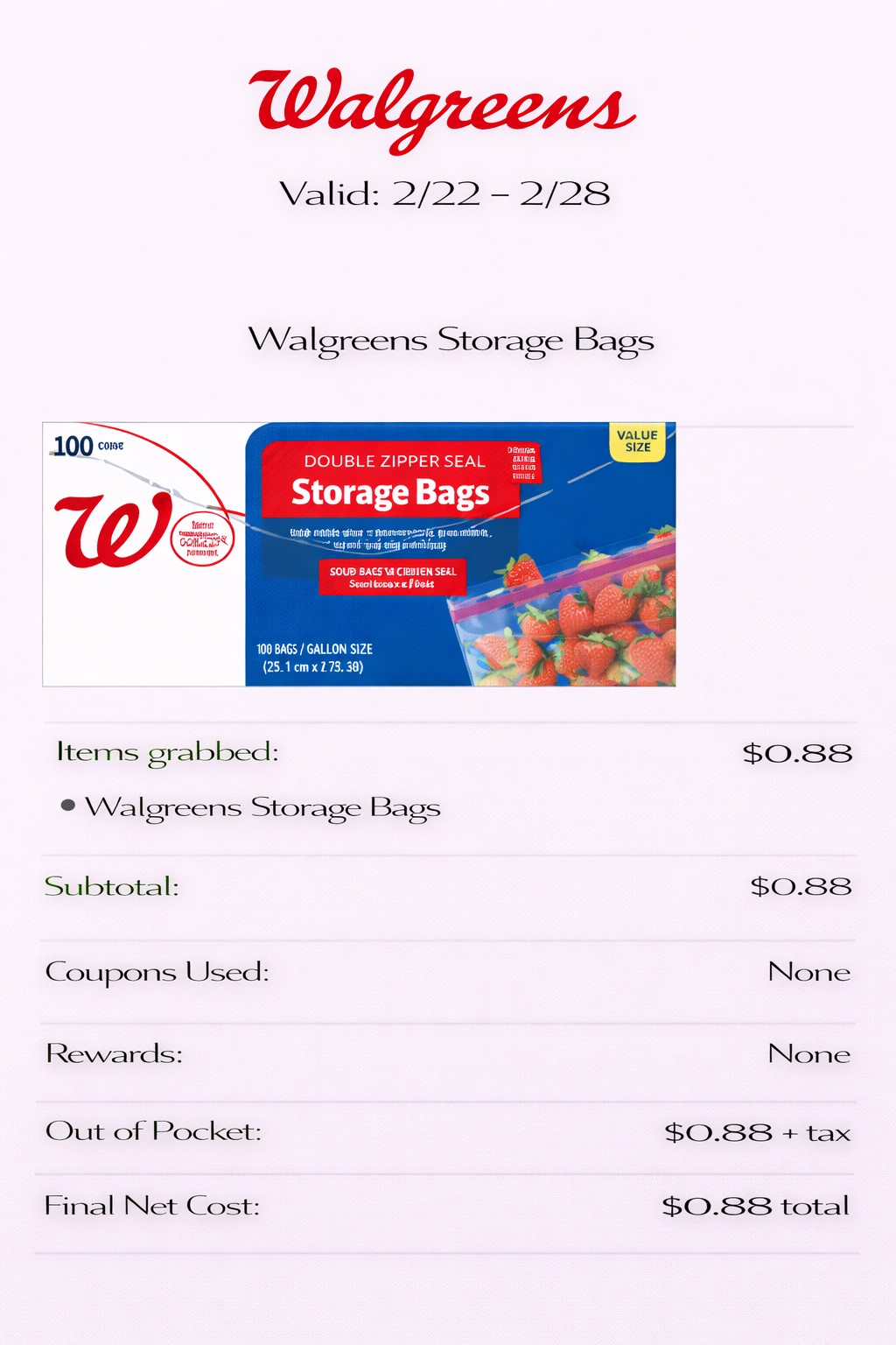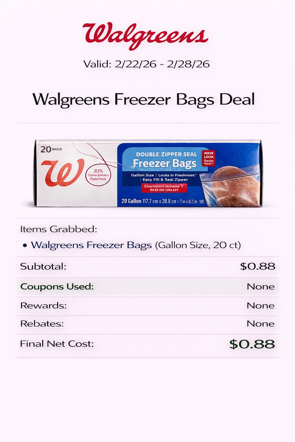 • Walgreens Freezer Bags (Gallon Size, 20 ct)