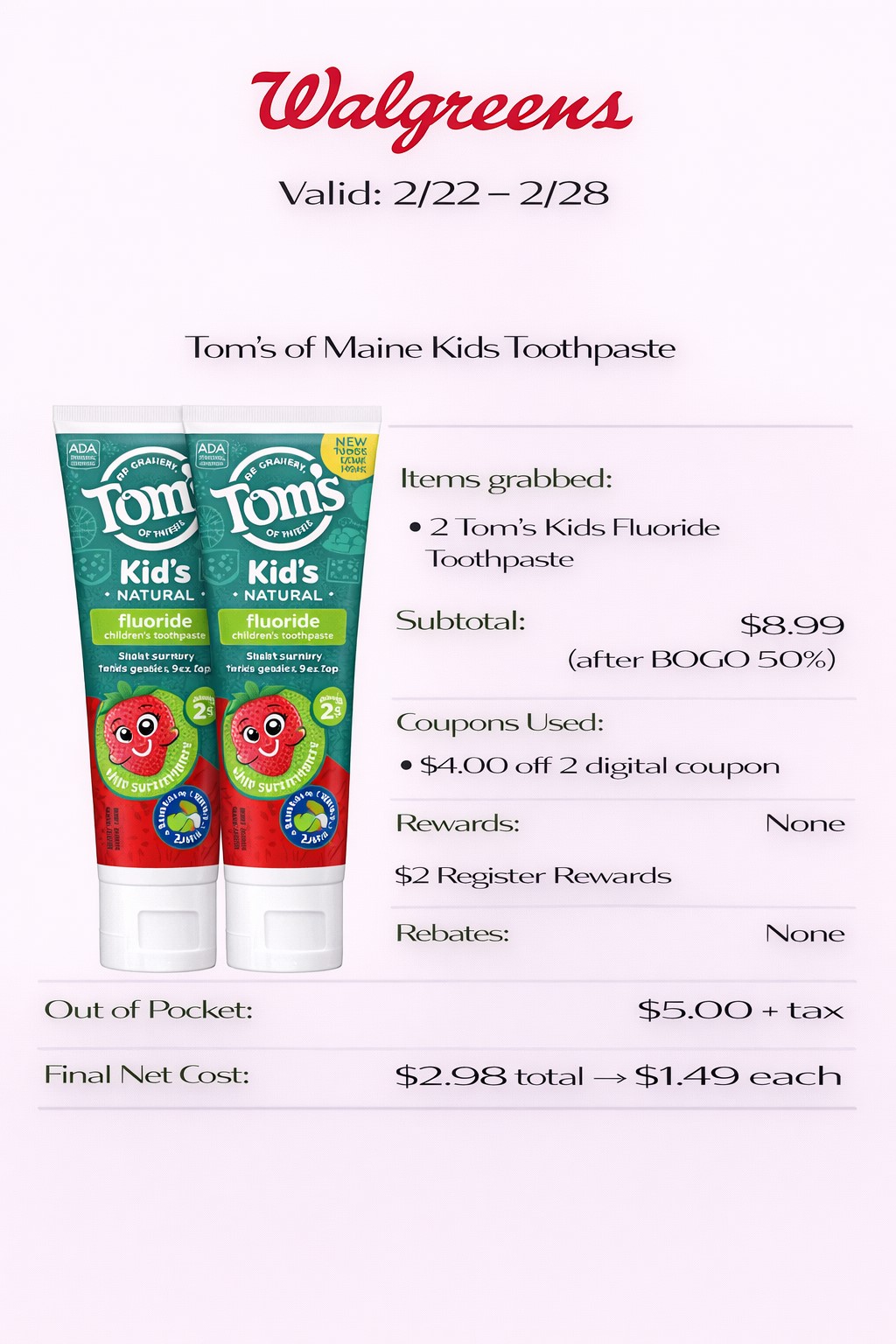 Final Net Cost: $6.98 total → ~$2.24–$2.49 each