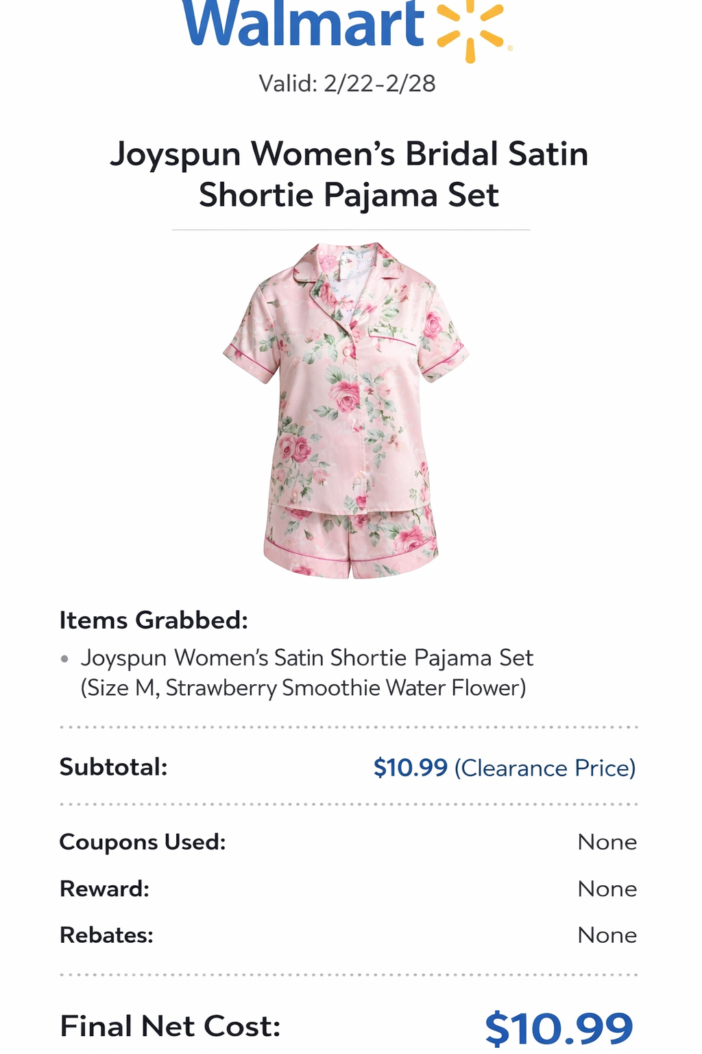- Joyspun Women’s Satin Shortie Pajama Set (Size M, Strawberry Smoothie Water Flower)