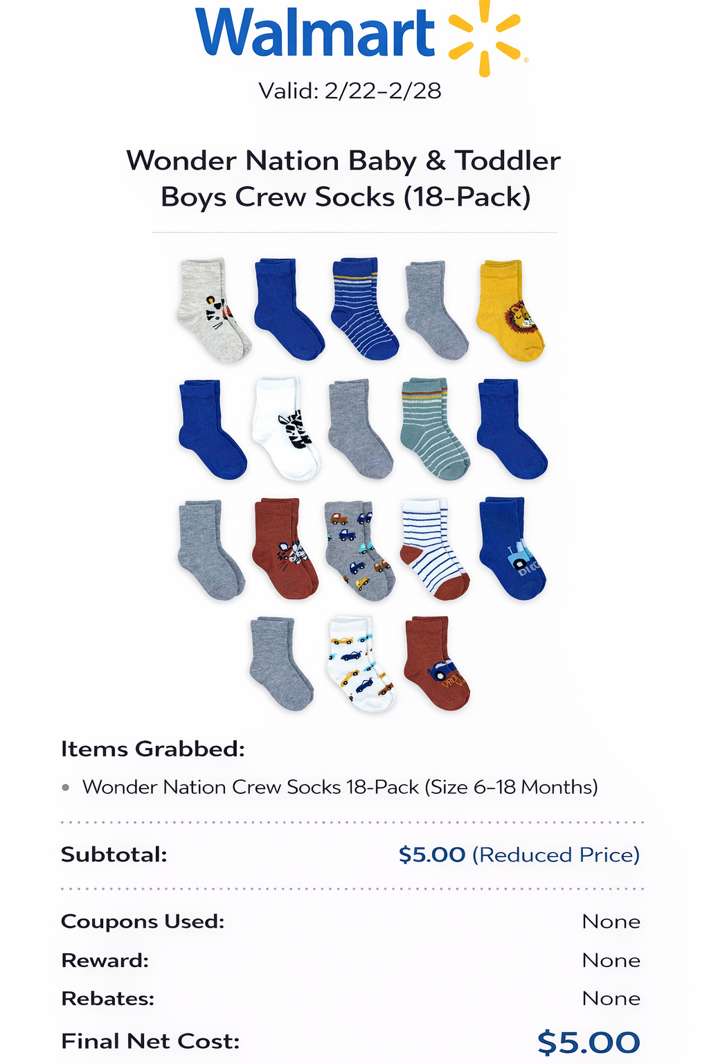 - Wonder Nation Crew Socks 18-Pack (Size 6–18 Months)